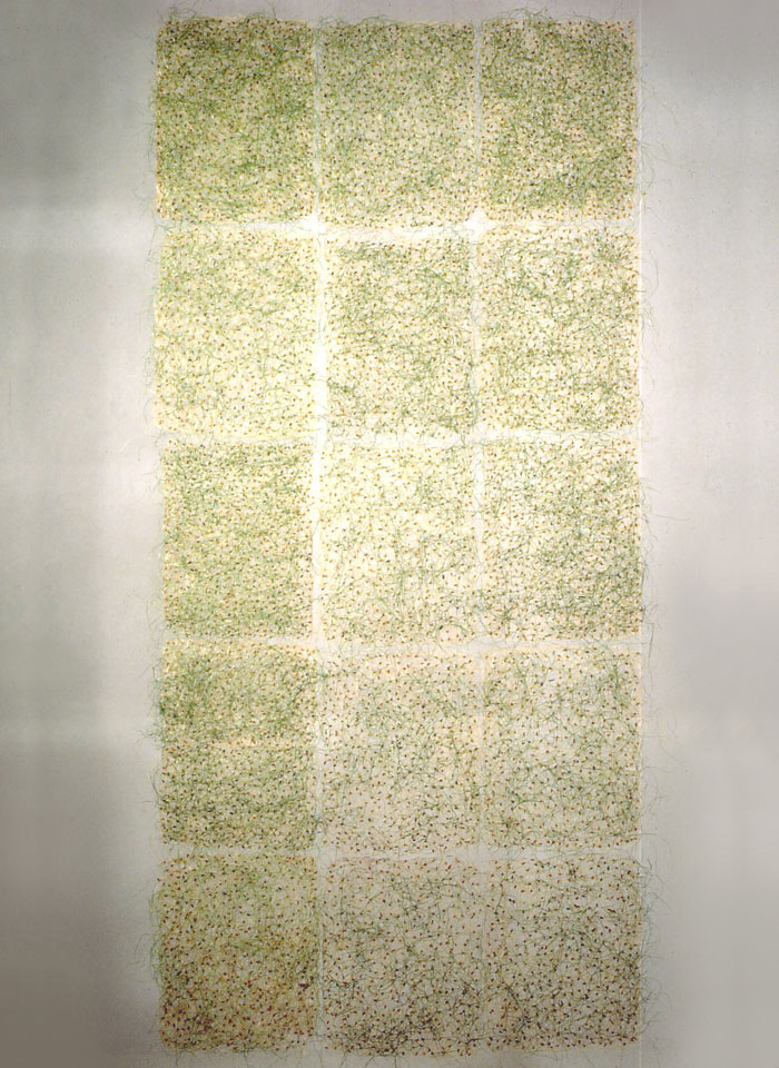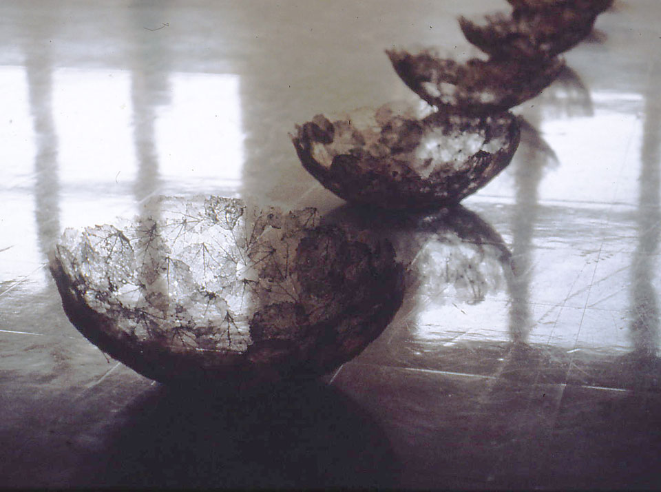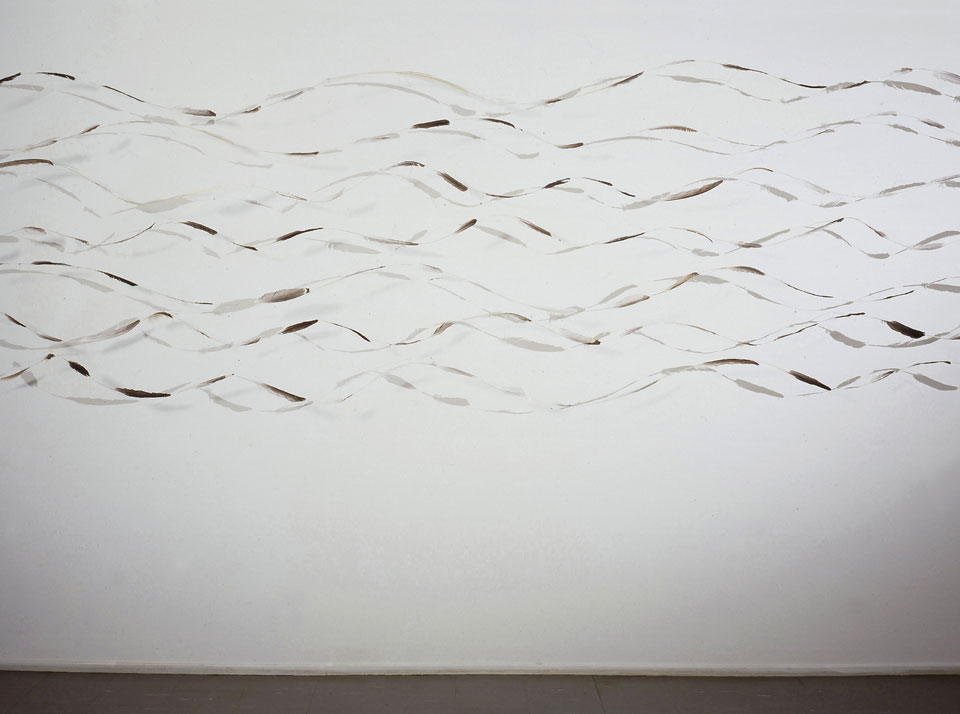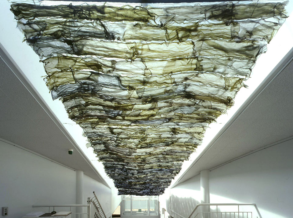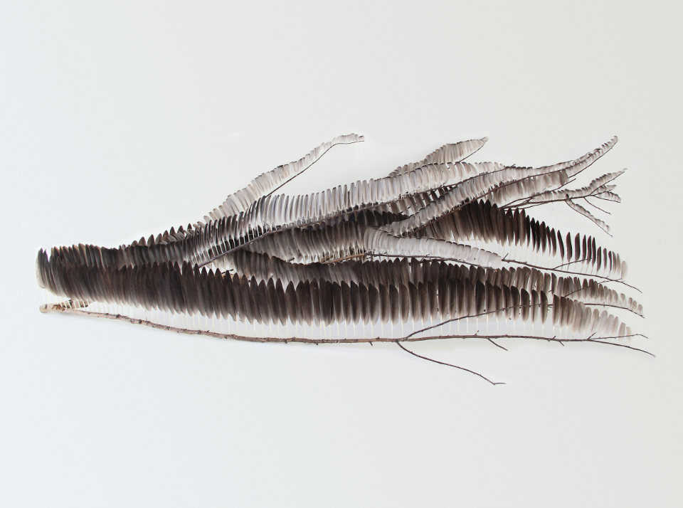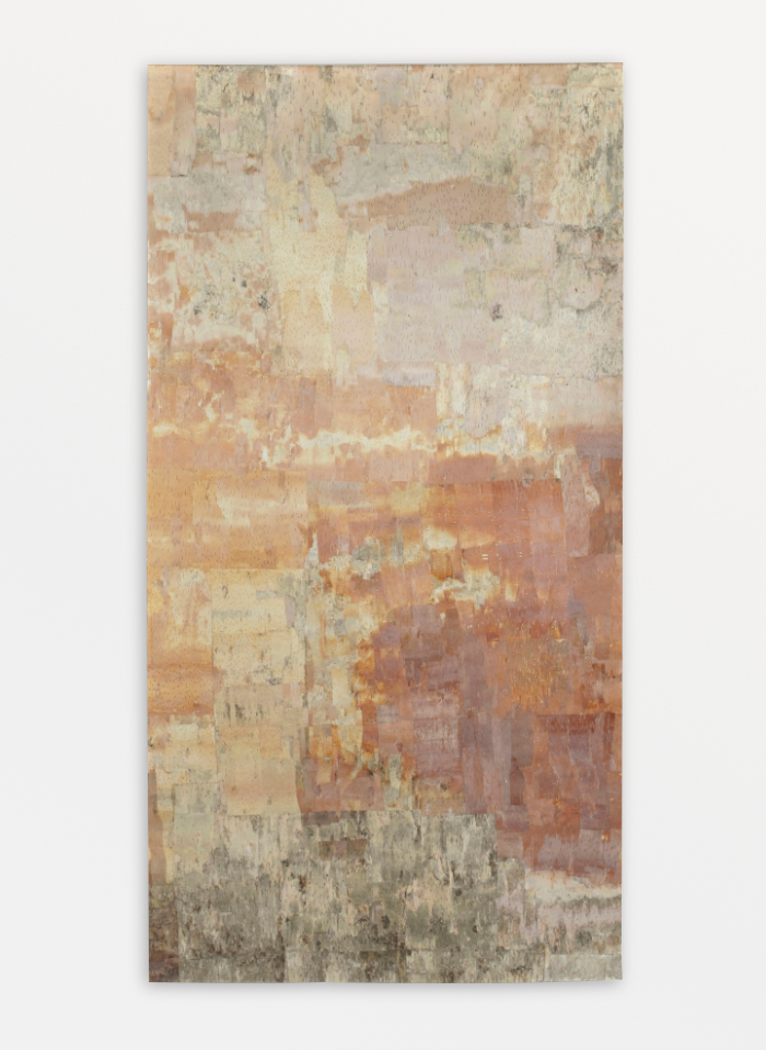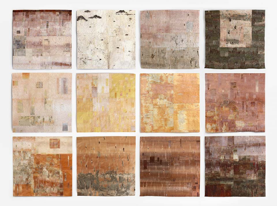 Bark is the skin of birchtree. It has been coating the tree at the mercy of weather, gathering inside itself colours that depend on the direction of sunlight, winds and the climate over time. There is a whole palette of colours inside the layers of bark. The patterns, lines and the merging colours on the bark remind me of the scenery around the birches: morning glows, sunsets, clouds, rain and the reflections mirrored by the lake. Those moments, tattooed in the skin of the birch are the reason and start for these works of mine. I would call them weather maps and landscape paintings.